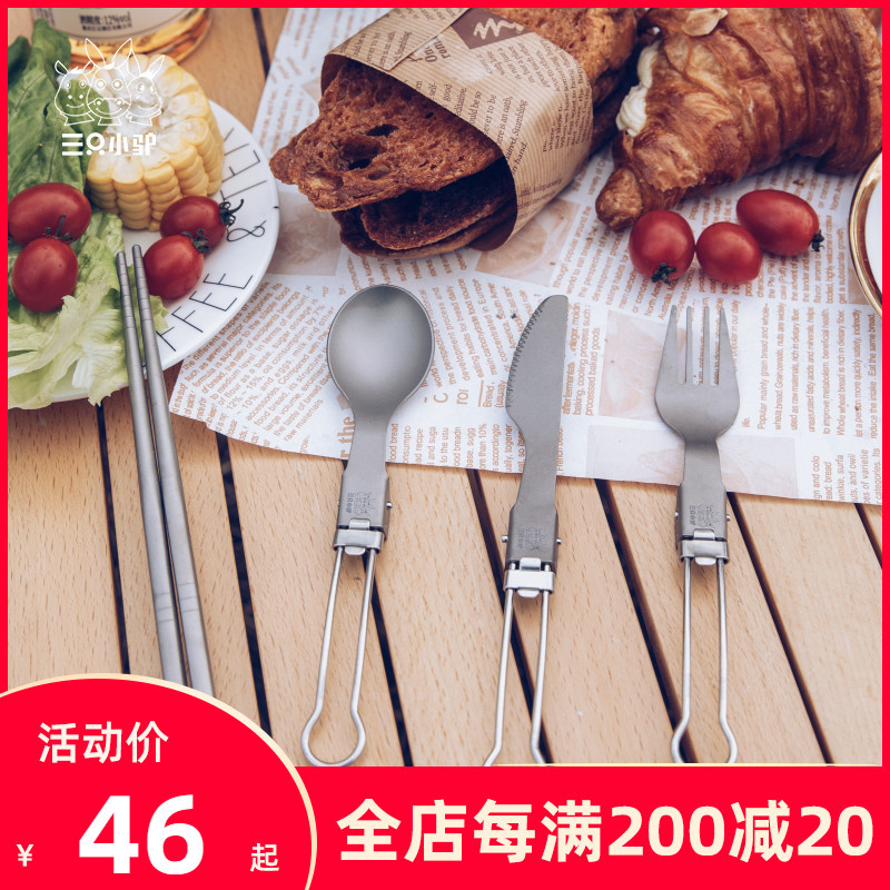 Outdoor titanium alloy portable tableware meal spoon Fork chopsticks camping foldable tableware knife fork spoon