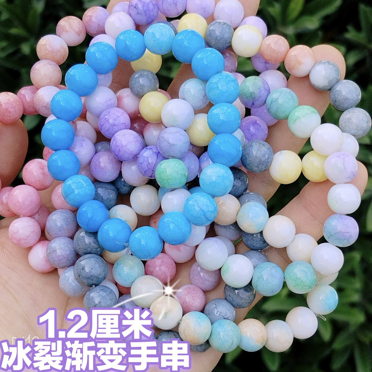 Crystal Glass bracelet female ice transparent gradient round beads round finger soft imitation white jade plate playing bracelet