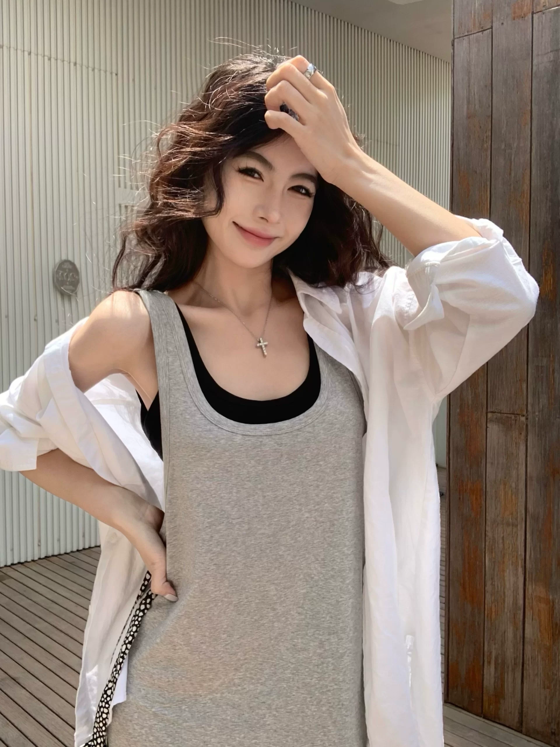 Lazy Summer Casual Vest A-Line Skirt Fake Two Pieces