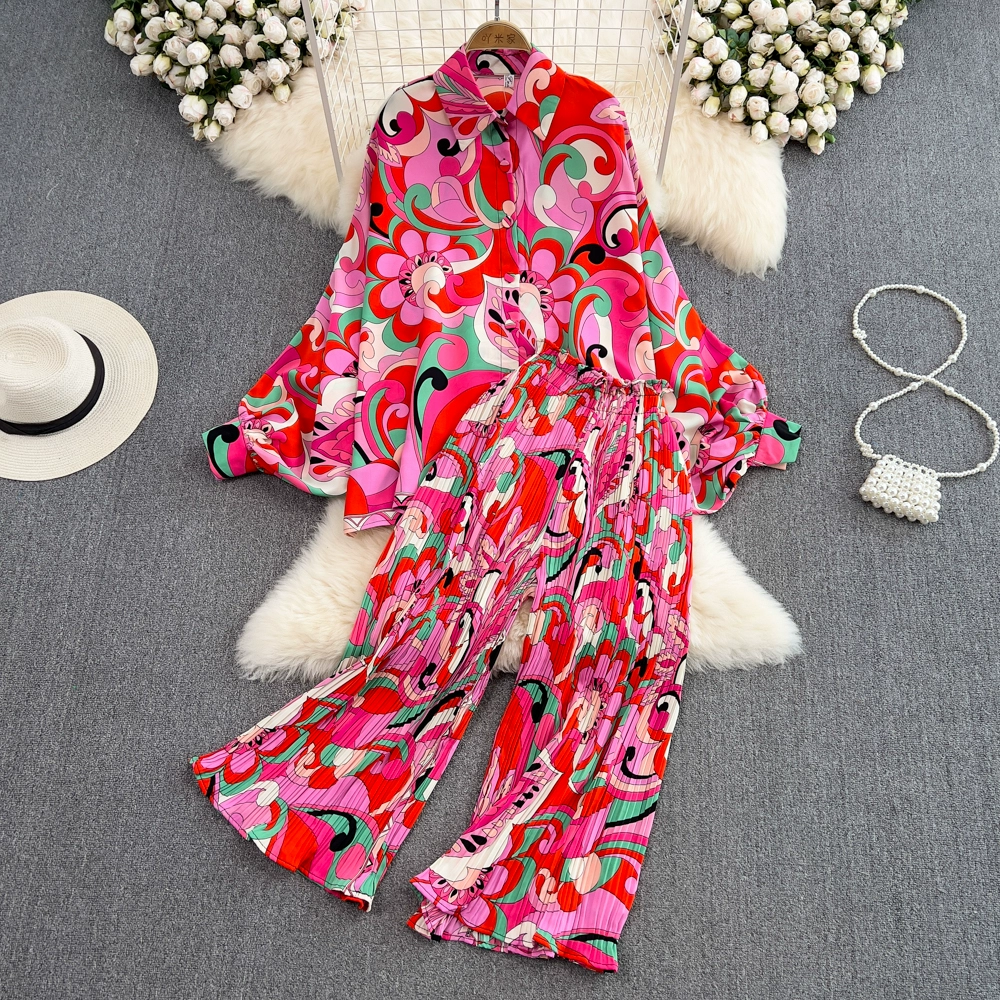 European and American lantern sleeve pleated nine-quarter pants fashion suit