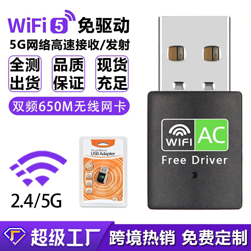 650m wireless network card drive-free computer USB wireless WiFi receiver 600m dual-band wireless WiFi network card