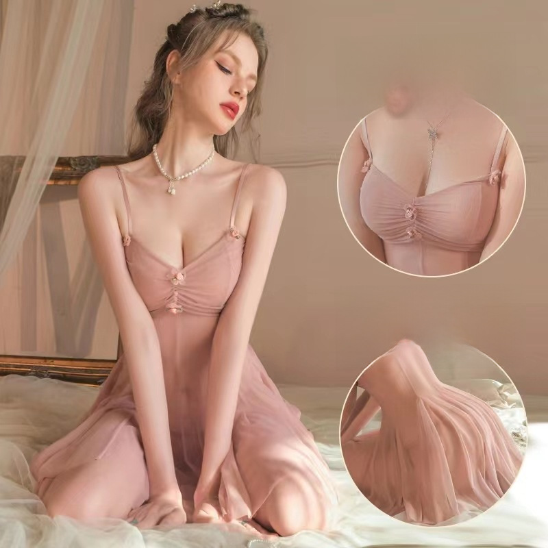 Su Manni plus size Sexy Lingerie Women’s Hot Lace Perspective Sexy Pure Desire Wind Free Opening Strap Nightgown