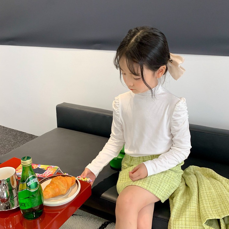 Children’s clothing children’s half turtleneck bottoming shirt 2024 Autumn New girls’ Korean-style velvet stretch solid color top wholesale