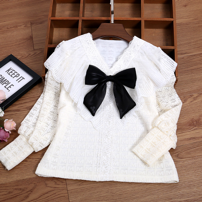 Girls’ Lace Shirt Children’s Spring and Autumn New Western Style Lace Shirt Long Sleeve Shirt for Large Children