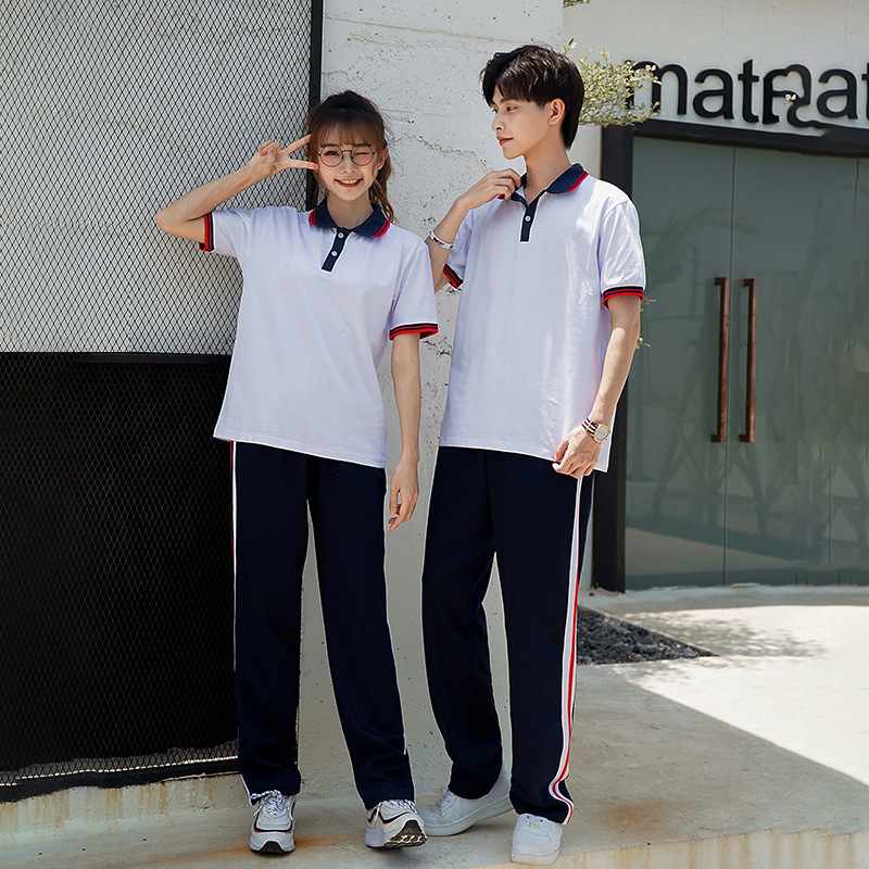 College style POLO shirt student sports school uniform suit summer high school students short sleeve trousers two-piece class clothing garden clothing