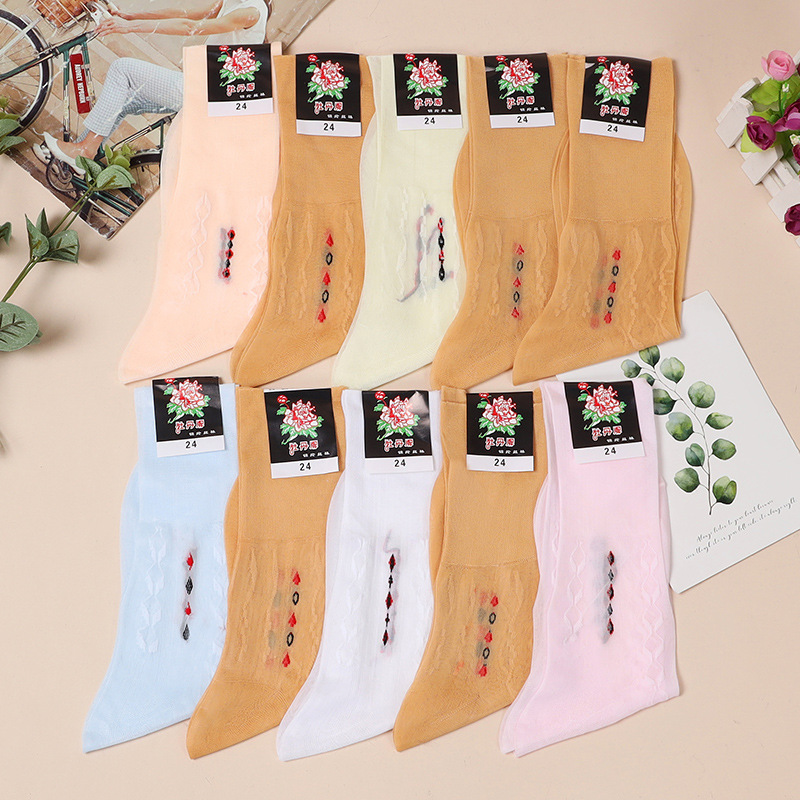 Spring and Summer Shanghai Peony Brand Old-fashioned Silk Stockings Middle-aged and Elderly Silk Stockings Nylon Stockings Old Silk Stockings