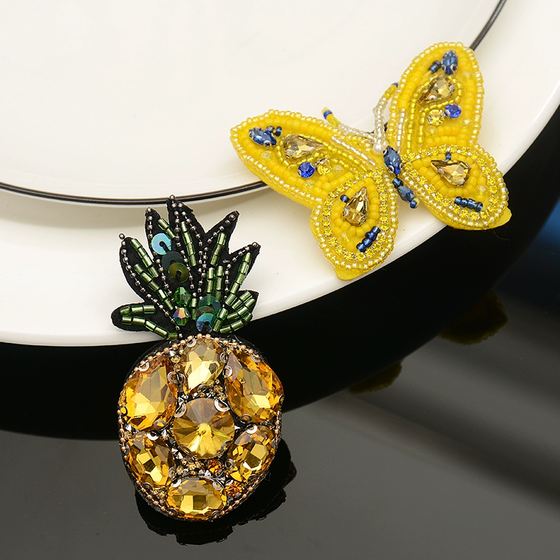 French handmade bead embroidery, crystal pineapple butterfly brooch, cloth patch women’s accessories, high-end pin decoration creative badge