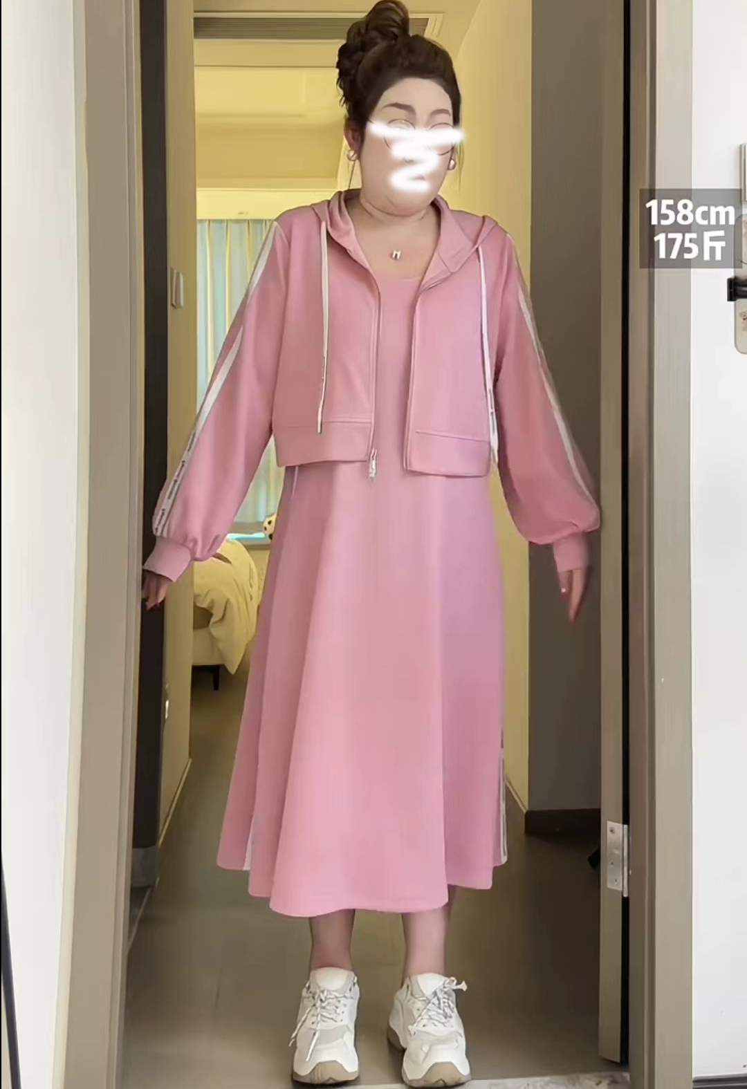 Casual coat suspenders slimming long skirt hooded sweatshirt