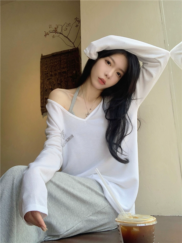 Rabbit is loose and thin, printed on the shoulders, the middle sleeve top