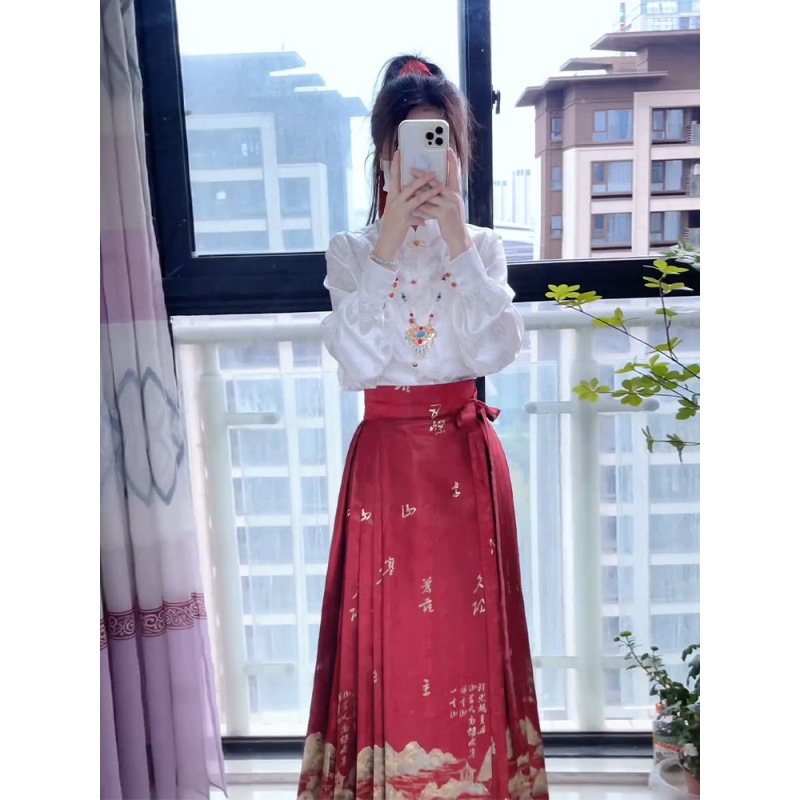 Red Horse Face Skirt Women’s Top Set 2024 Spring New Chinese Style Little Man Daily Chinese Style Hanfu Dress