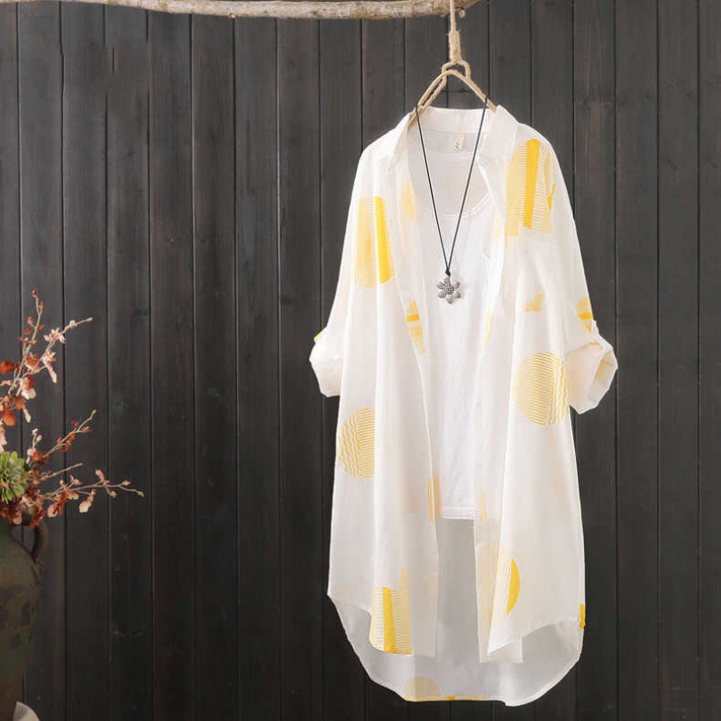 New Mid-length Women’s Artistic Letters Fashion Design Printed Loose Sunscreen Thin Cardigan Coat Beach