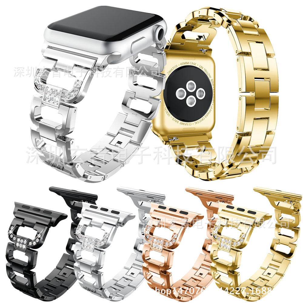 Suitable for apple watch apple D-shaped diamond stainless steel strap iwatch bracelet steel strap