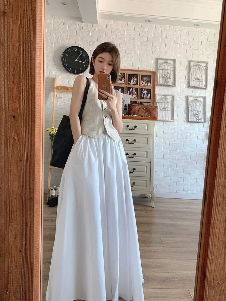 Niche Spice Girls Pleated Sleeveless Knitted Vest Base Design Summer Split Sexy Tube Top Outer Wear