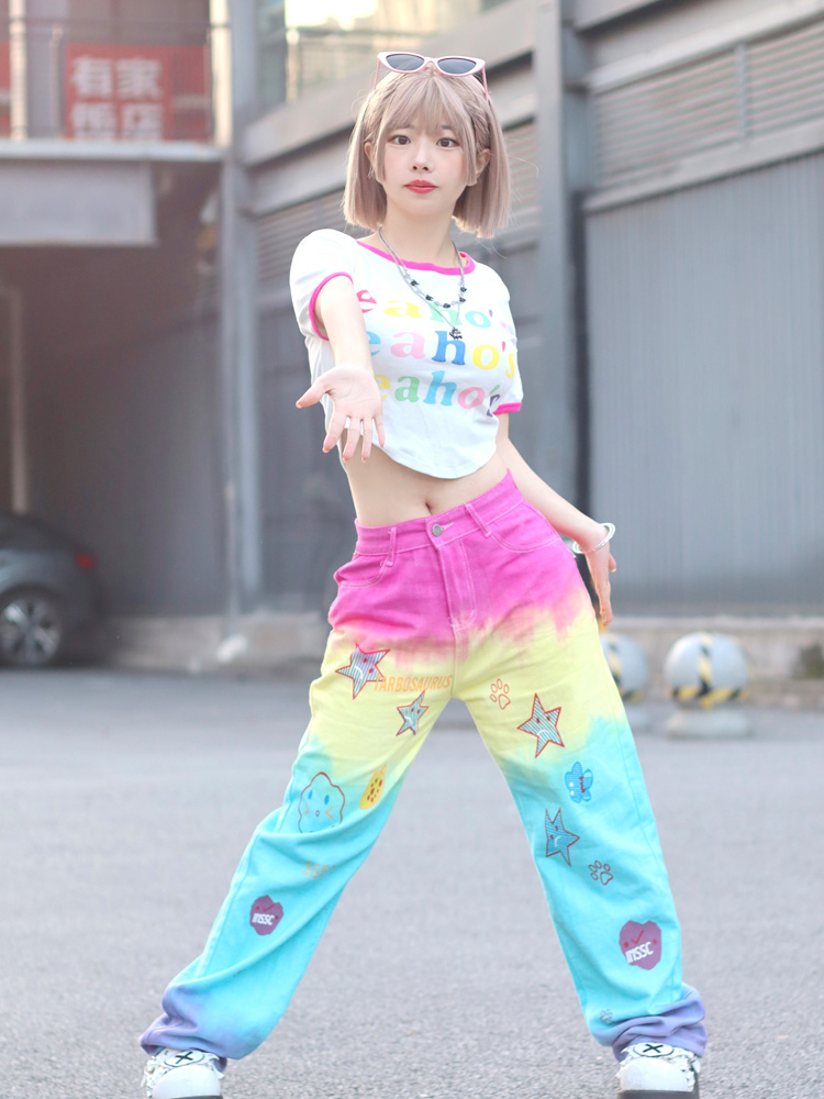 Rainbow high waist loose straight-leg sweet jeans