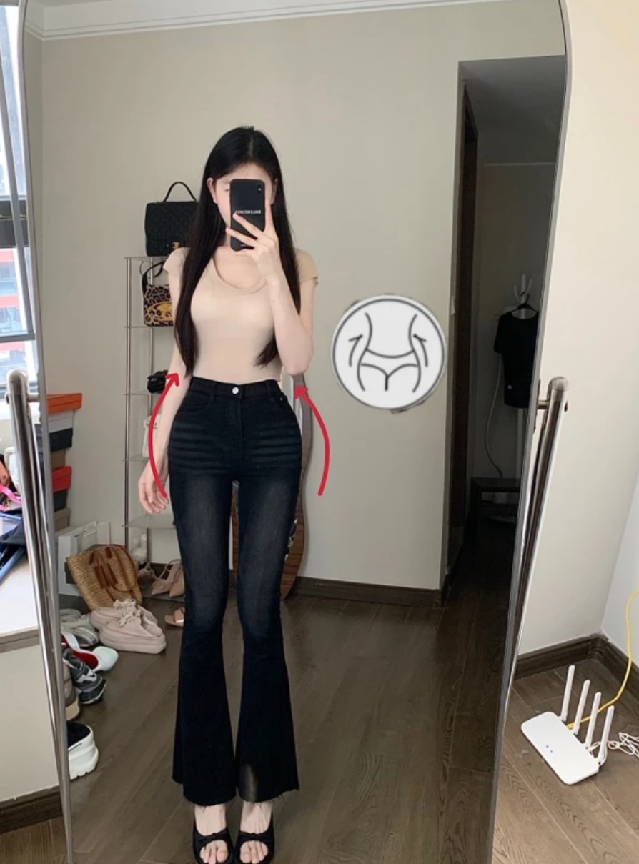 High -waisted horn tight -fitting hip -to -hip wild elastic jeans