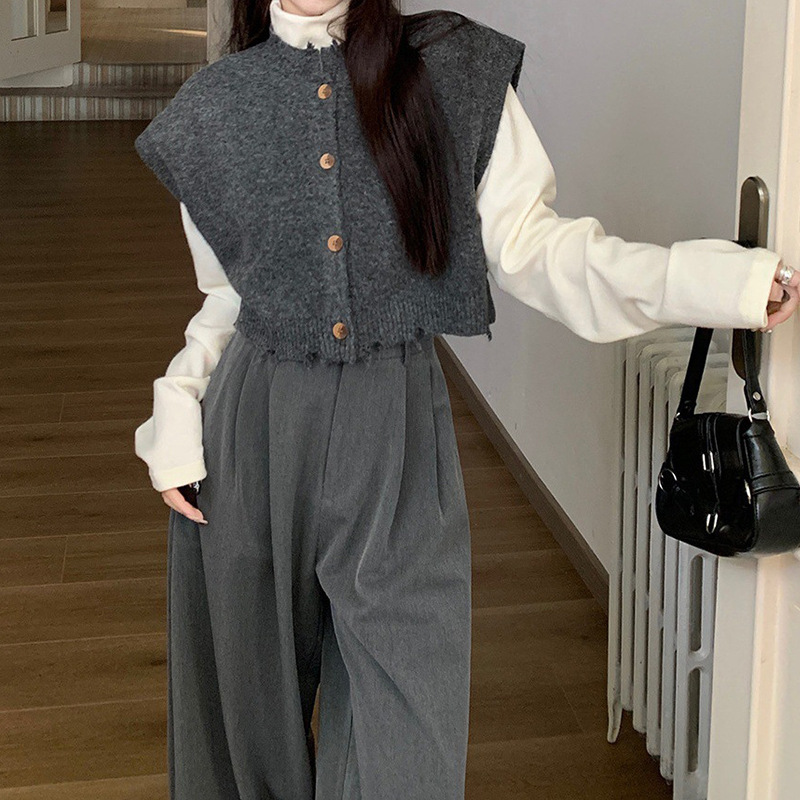 Grey trendy street style waistcoat sweater autumn and winter new fashion irregular burr stacked knitted vest for women