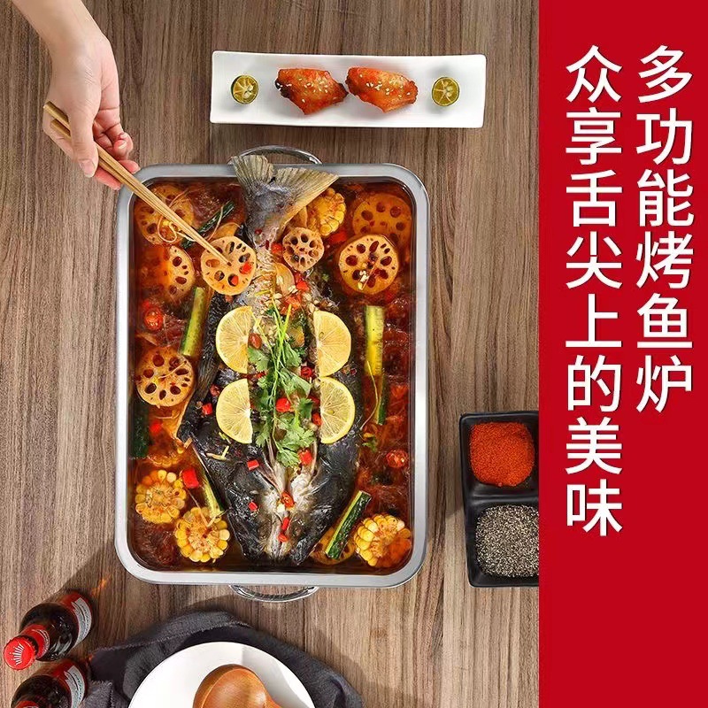 Stainless steel grilled fish stove for wholesalers restaurant grilled fish plate rectangular seafood large coffee plate household charcoal grilled fish special