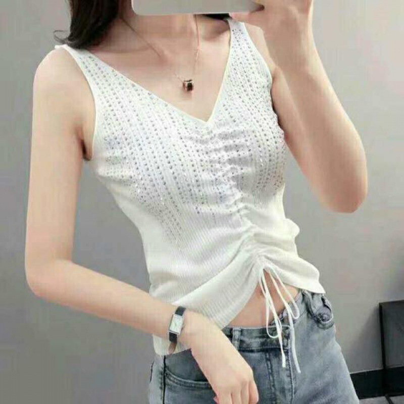 Camisole Women’s Outer Wear Summer Students Korean Style Inner Wear Sexy Sleeveless Knitted Base Shirt Slimming Brilliant Top Trendy