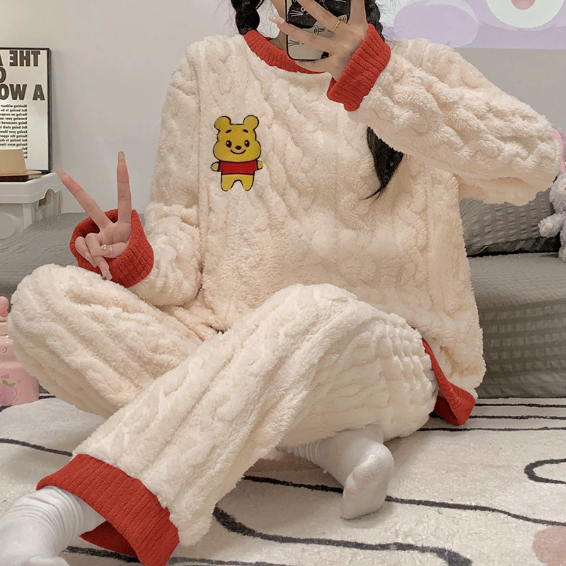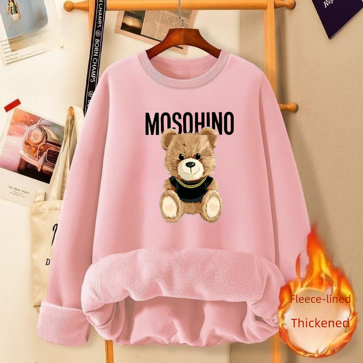 2024 spring, autumn and winter New fleece-lined thickened round neck sweater women’s Korean-style loose printed all-match warm top ins