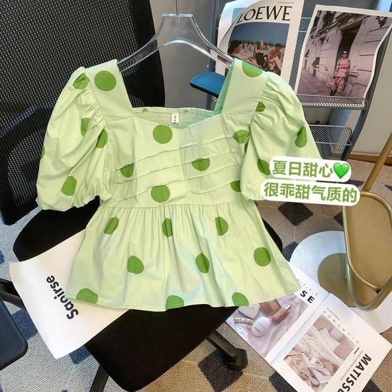 Short-sleeved girls 2024 summer new design sense niche waist bubble sleeve short square collar shirt top
