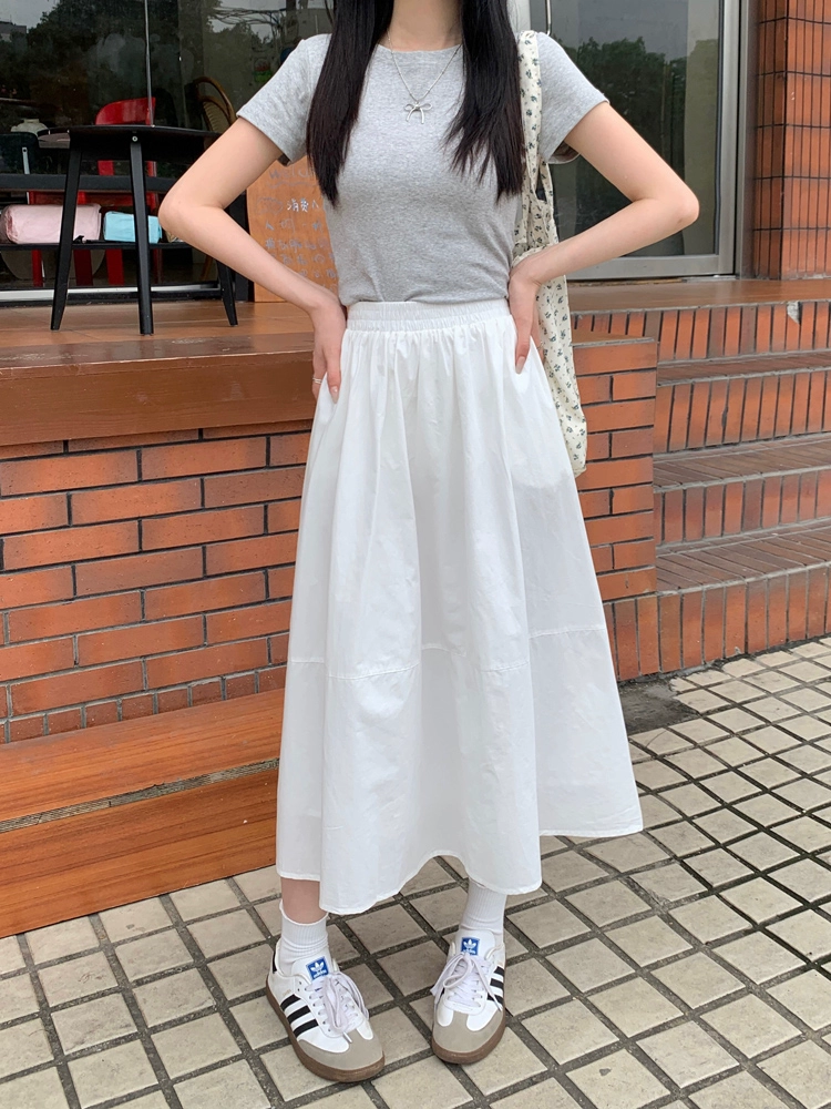 Homemade Sanmuzi Elastic waist pleated blue skirt for women in spring and summer high waist mid-length white A-line skirt