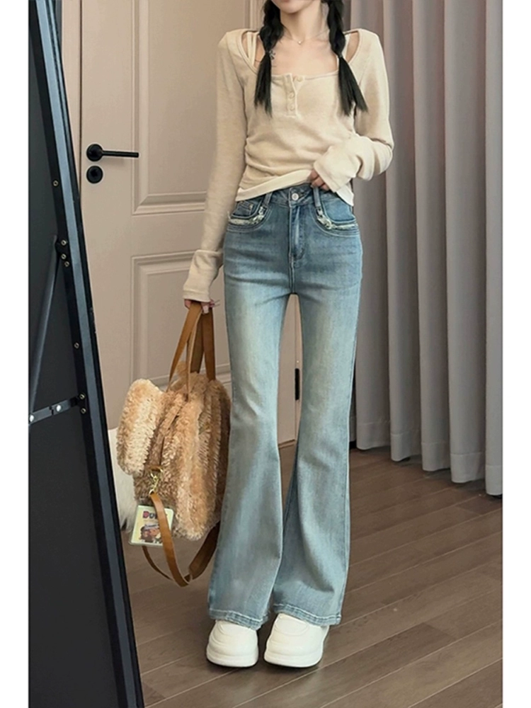 Internet celebrity light blue retro high waist stretch jeans