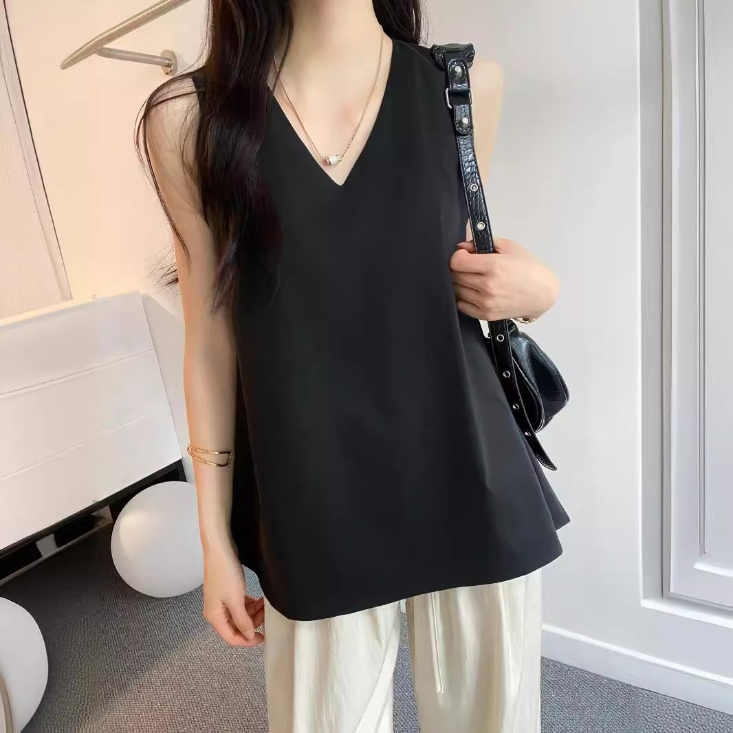 Every day miss you temperament V-neck sleeveless vest top women’s loose slim doll shirt 2024 new