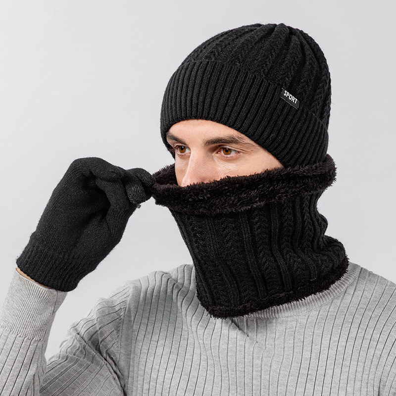 Men’s Knitted Neck Hat suit Fashionable All-match Warm Turn-up Wool Hat fleece-lined Thickened Neck Protection Neck Sleeve for Women