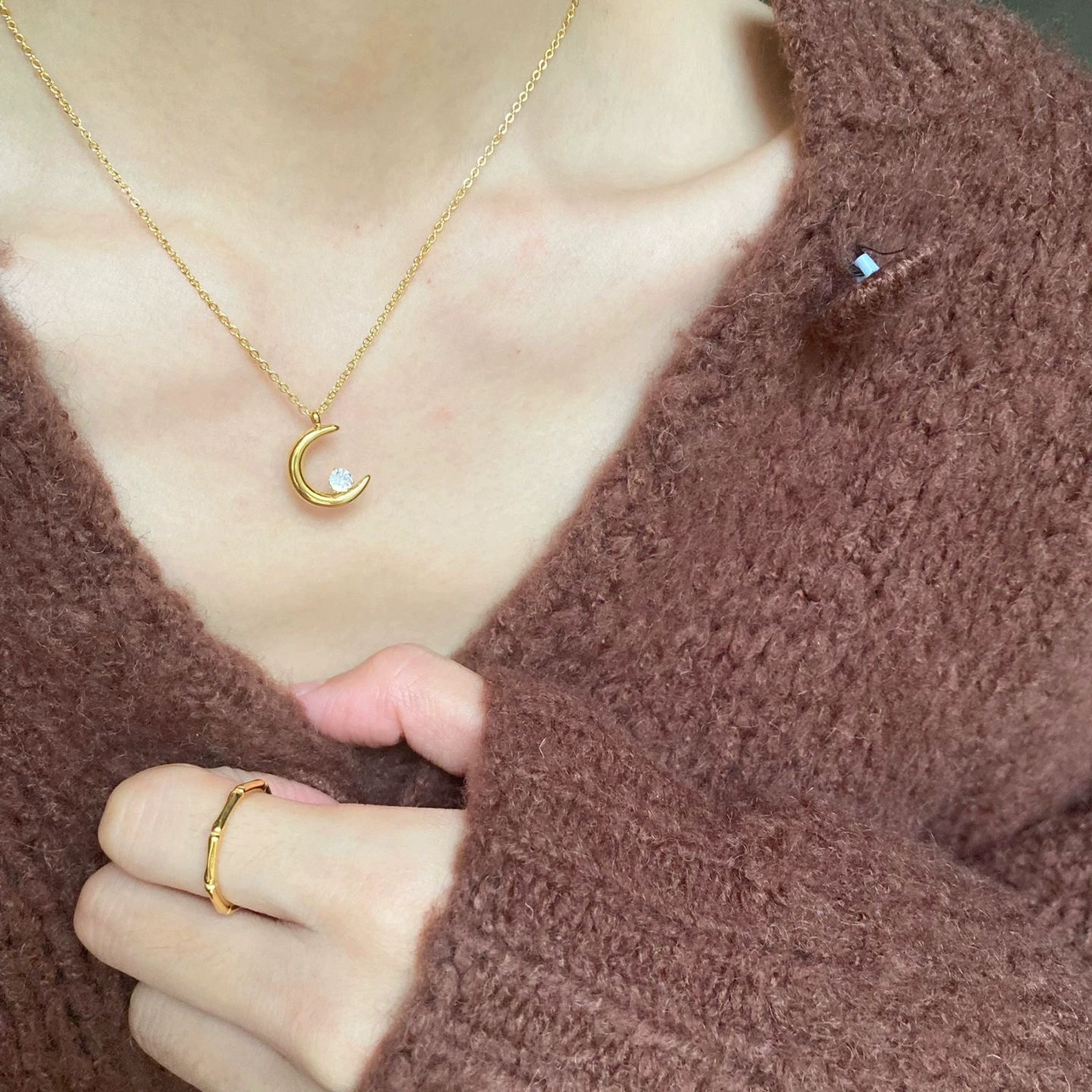 French medical titanium steel anti-allergic aura moon pendant diamond necklace design autumn and winter new gift for girls