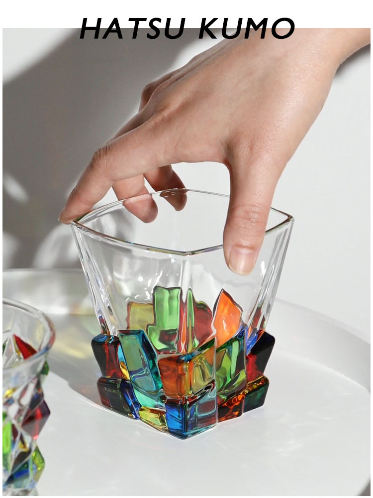 ZJ05 rainbow melted into sugar hand painted whiskey cup Italian painted colorful wine glass artistic glass