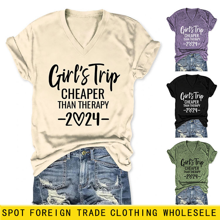 Amazon all-match T-shirt girl’s trip cheaper than 2024 New V-neck elegant women’s short sleeve