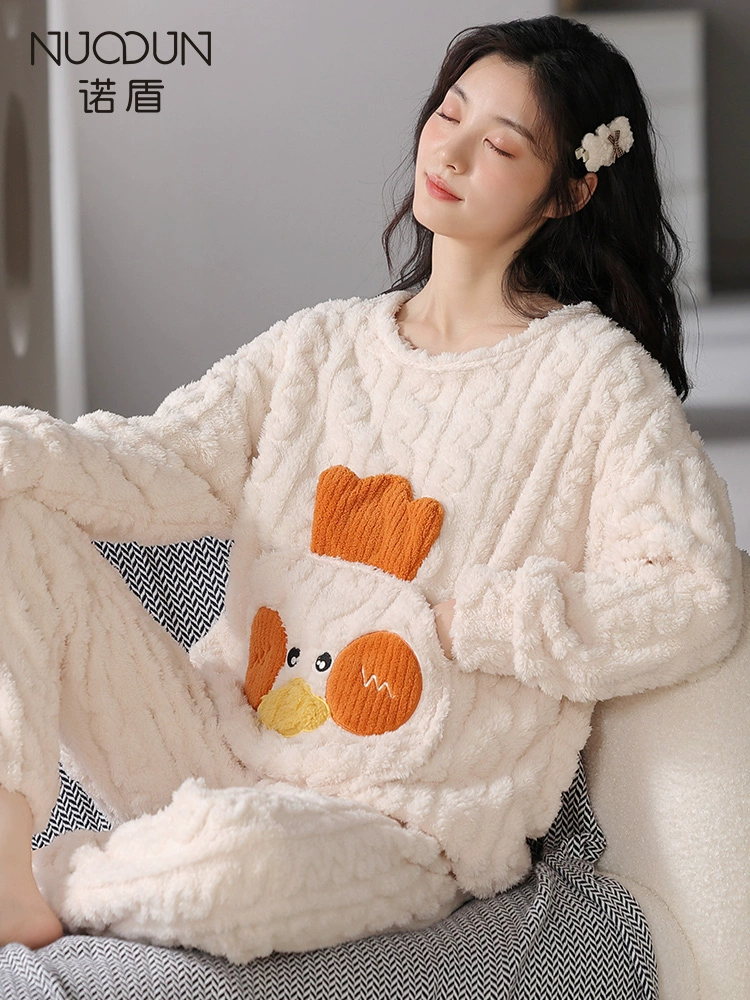 Coral velvet pajamas 2022 new autumn and winter plus velvet thick long -sleeved flaw large size home service set winter