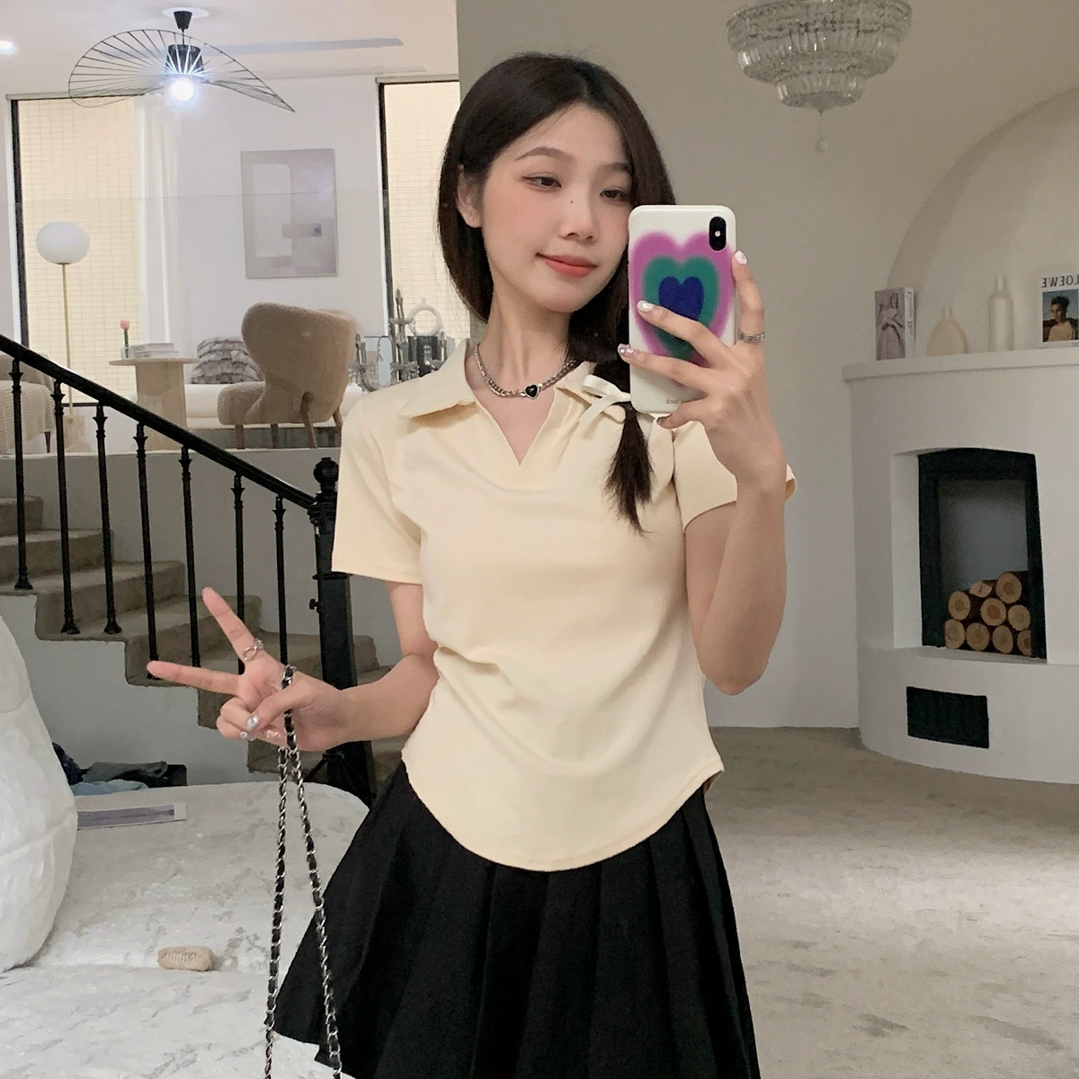 mm straight shoulder slim irregular polo collar short-sleeved T-shirt