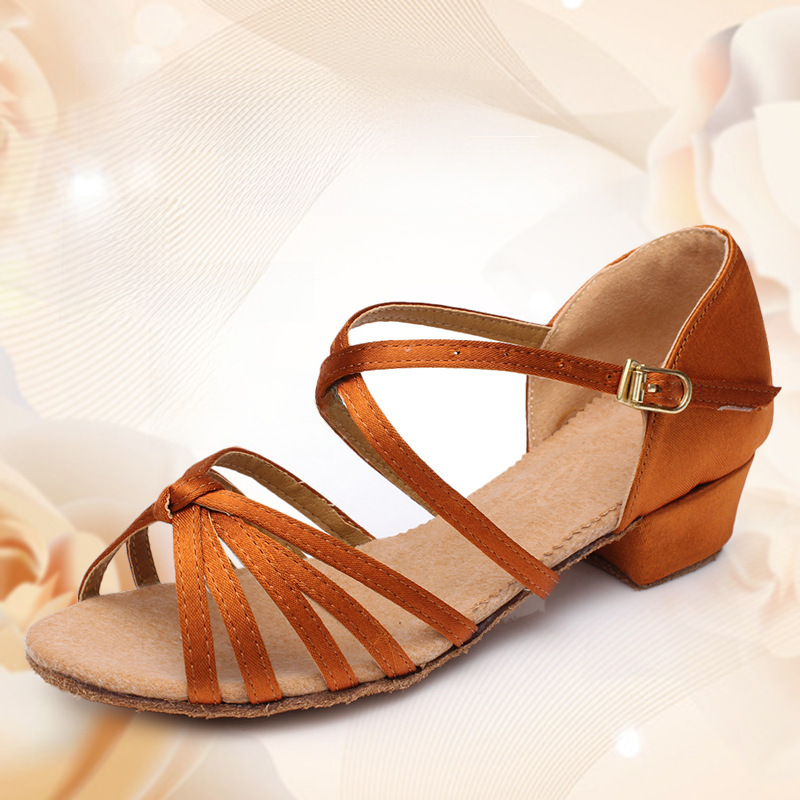 Children’s Satin High-heeled Dance Shoes Children’s Latin Dance Shoes Children’s Soft-soled Dance Practice Shoes Girls Cha Cha Samba