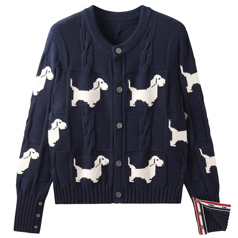 Cashmere dog blooming flowers lazy round neck knit sweater