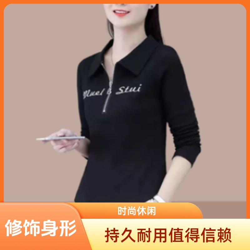 Age-reducing Korean T-shirt Women’s T-shirt 2024 Slimming Top Polo Shirt Long Sleeve Spring and Autumn Western Style Base Shirt