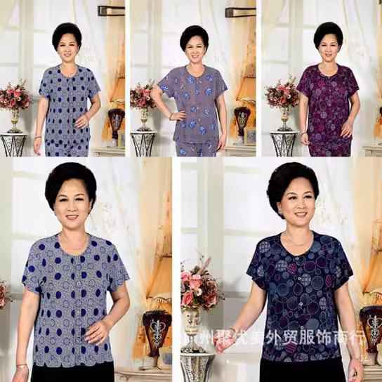 Cheap mother clothes for the elderly wholesale summer short-sleeved shirt stall cheap beach running Jianghu goods source