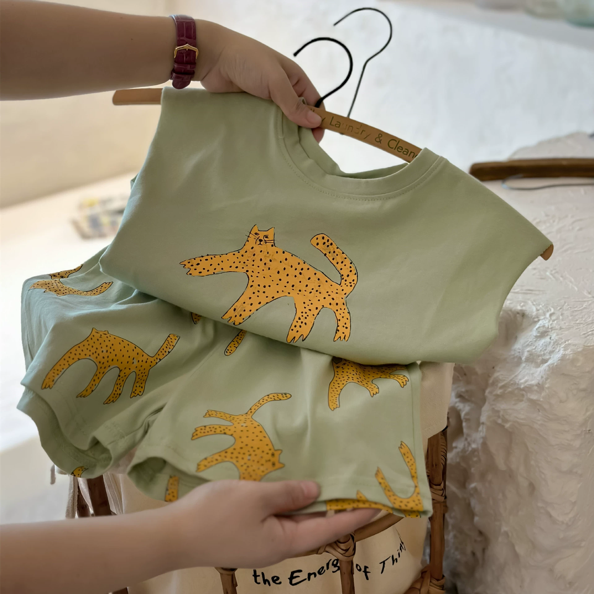 Cute spring and autumn pure cotton kitten sweatshirt set