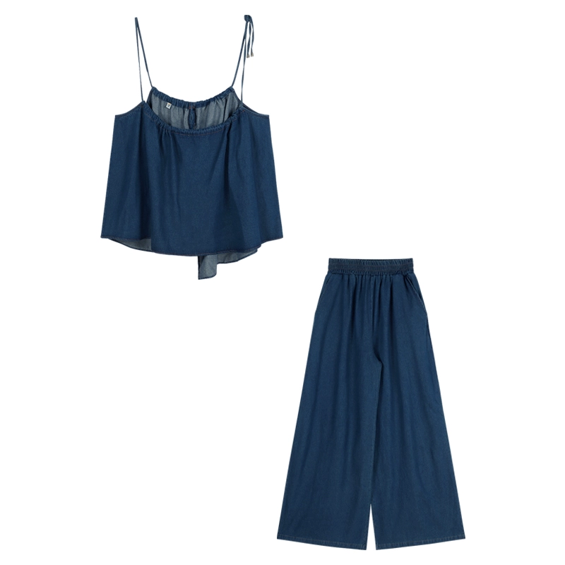 Blue Denim Hot Girl Casual Wide Leg Pants Suspenders