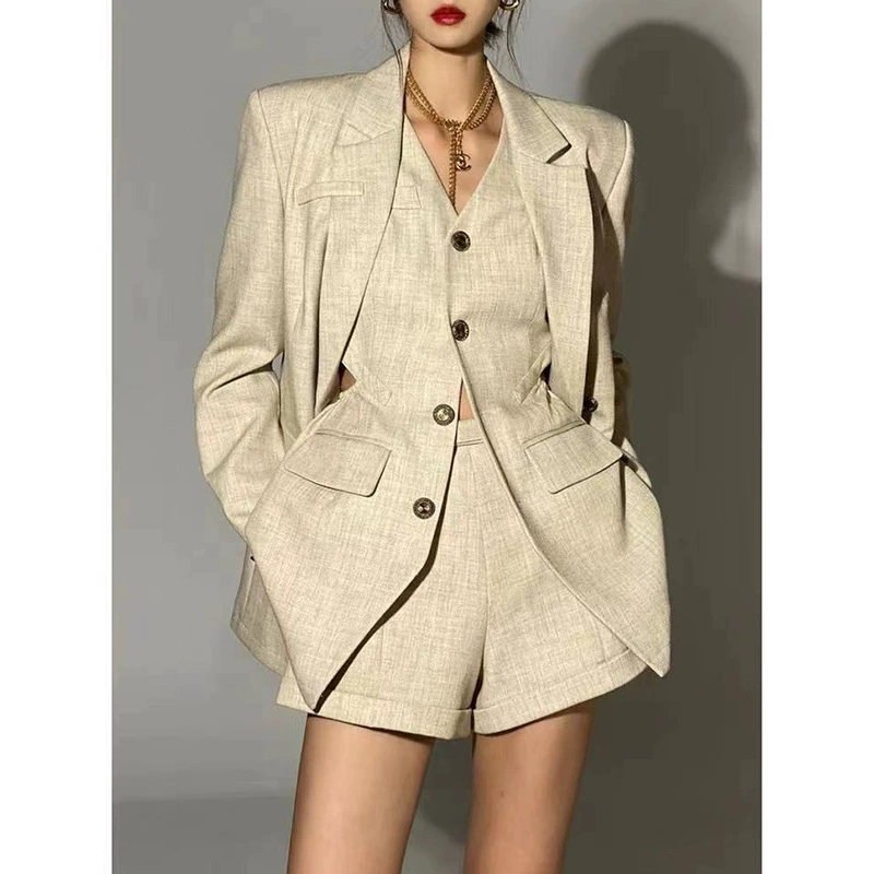 European and American Fashion Small Style 2024 Summer New Suit Collar Long Sleeve Stitching Pleated Mesh Small Suit Jacket for Women