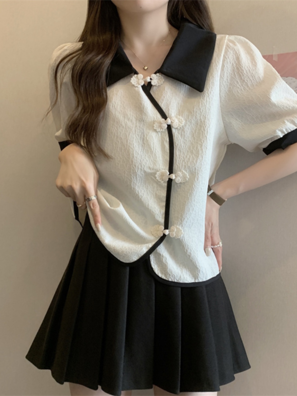 New Chinese style short-sleeved chic buckle for obese girls to cover their flesh and make them look slimmer