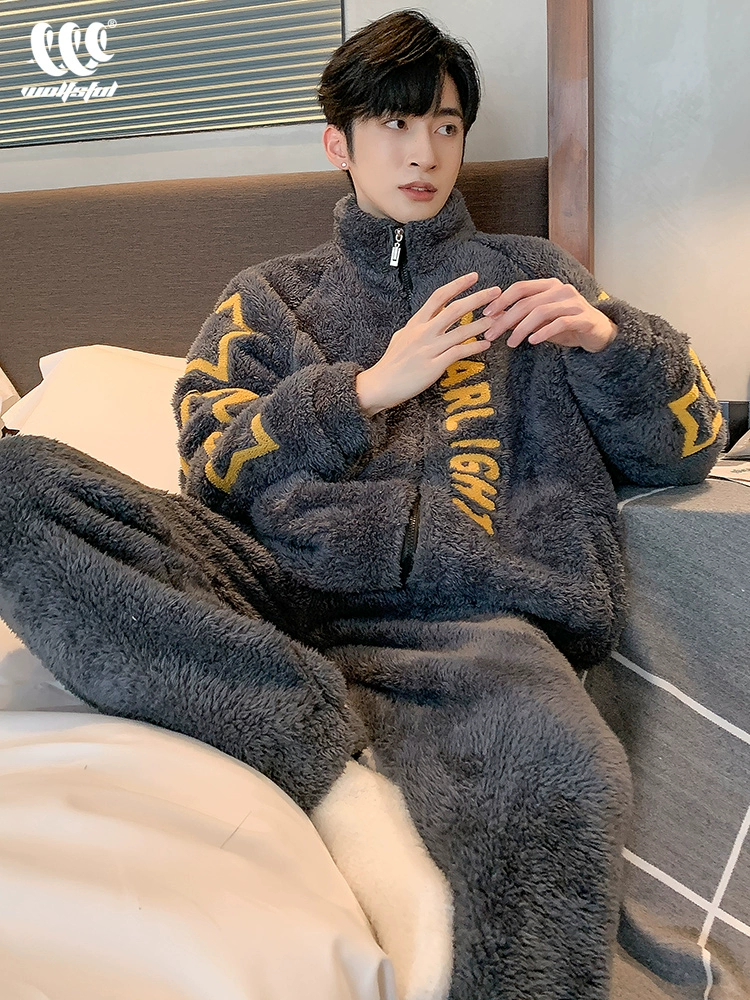 Pajamas Men’s Winter Thickens and Velvet Coral Velvet 2024 New Men Young A Young Person can wear home clothing suits