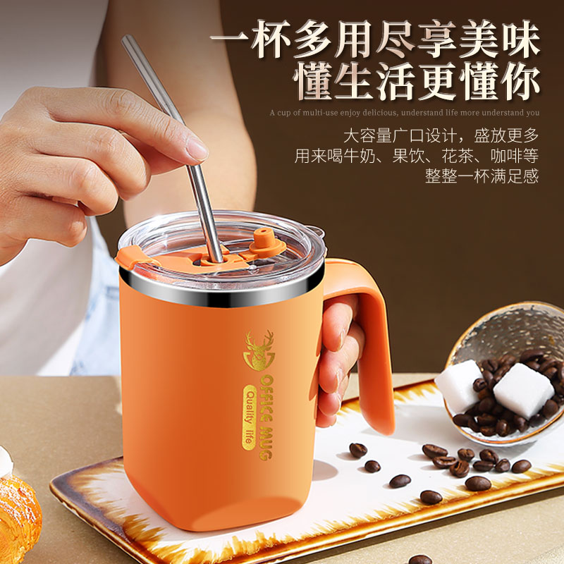 KF15316L stainless steel mug with lid and spoon dormitory drinking coffee couple Cup female male office
