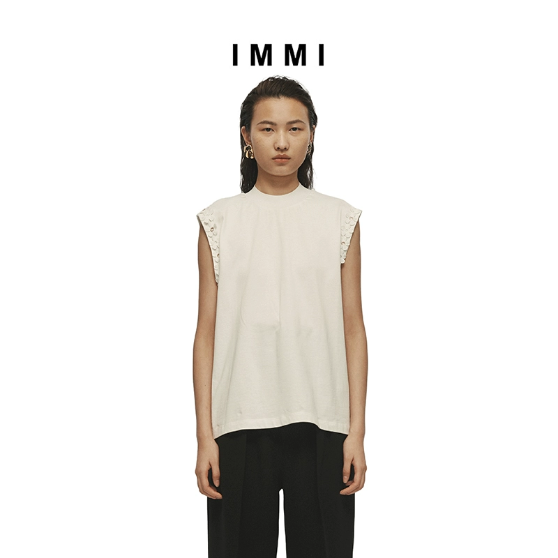 [IMMI] Spring and summer flat -grained sleeveless T -shirt 111te016y