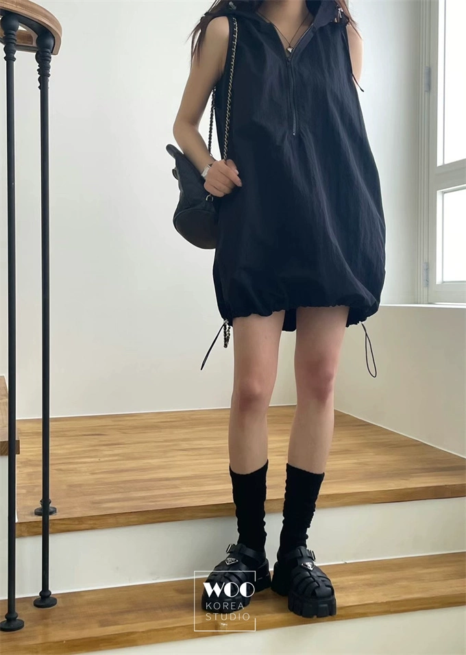 UP casual hooded semi -zipper hem flower bud skirt drawing