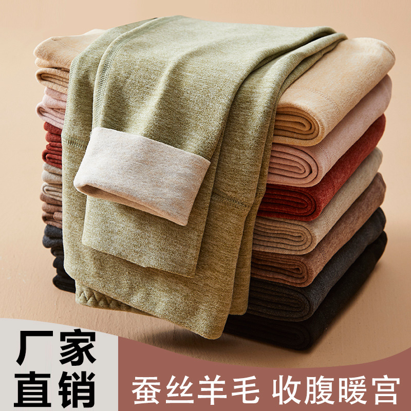 High Waist Fleece Autumn Trousers Women’s Autumn and Winter Fleece-Lined Thickened Silk Belly-Tucking Warm Pants Exterior-Wearing Hot Non-Traceless Bottoming Pants
