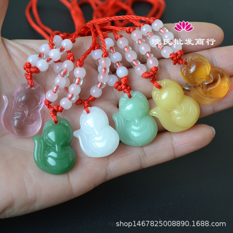 Glass imitation Jade artificial crystal cute little fox pendant women’s necklace men’s red rope jewelry pendant gift