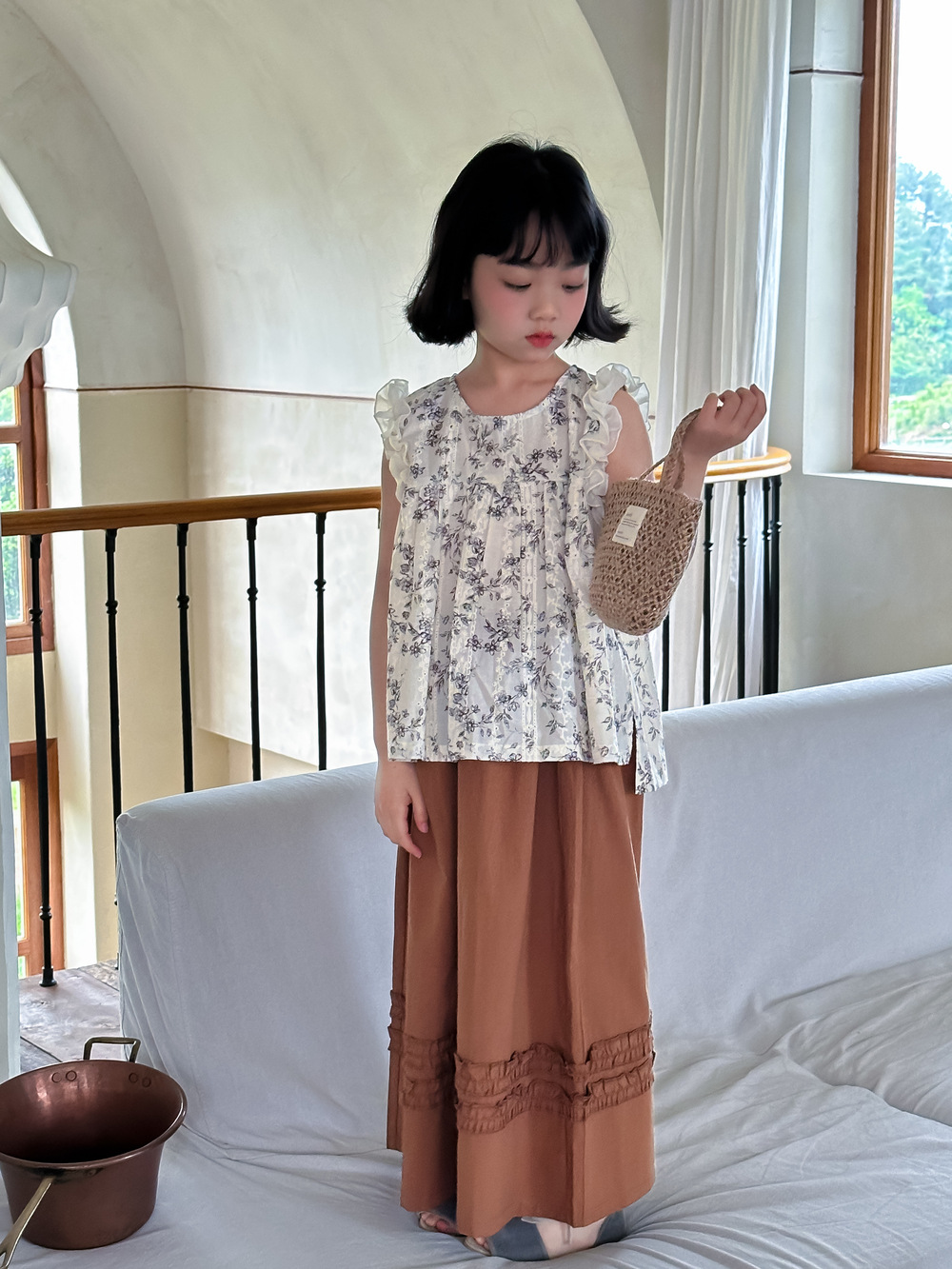 Children’s Top 2024 Summer Girl’s Korean Style Floral Sleeveless Shirt Children’s Casual Back Button Lace T-Shirt End Small Mon