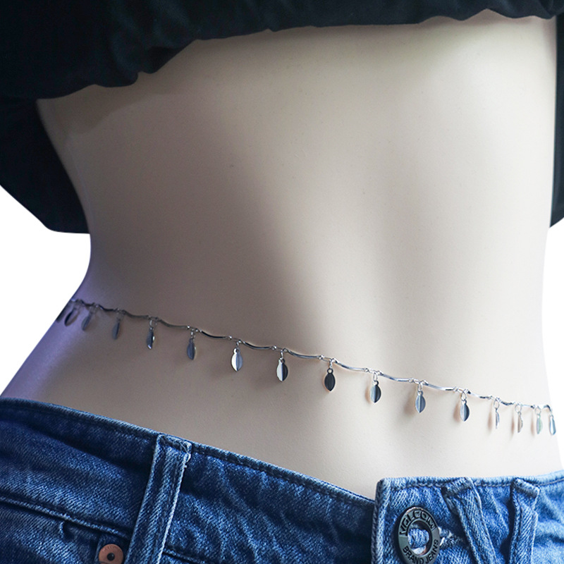 Stainless steel simple all-match elegant sexy Leaf leaves women’s titanium steel tassel jewelry waist chain waist decoration body chain