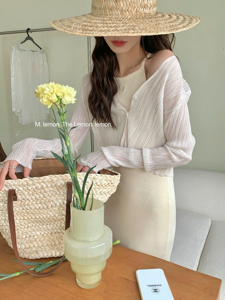 Ice silk suspender air conditioning shawl top knitted cardigan